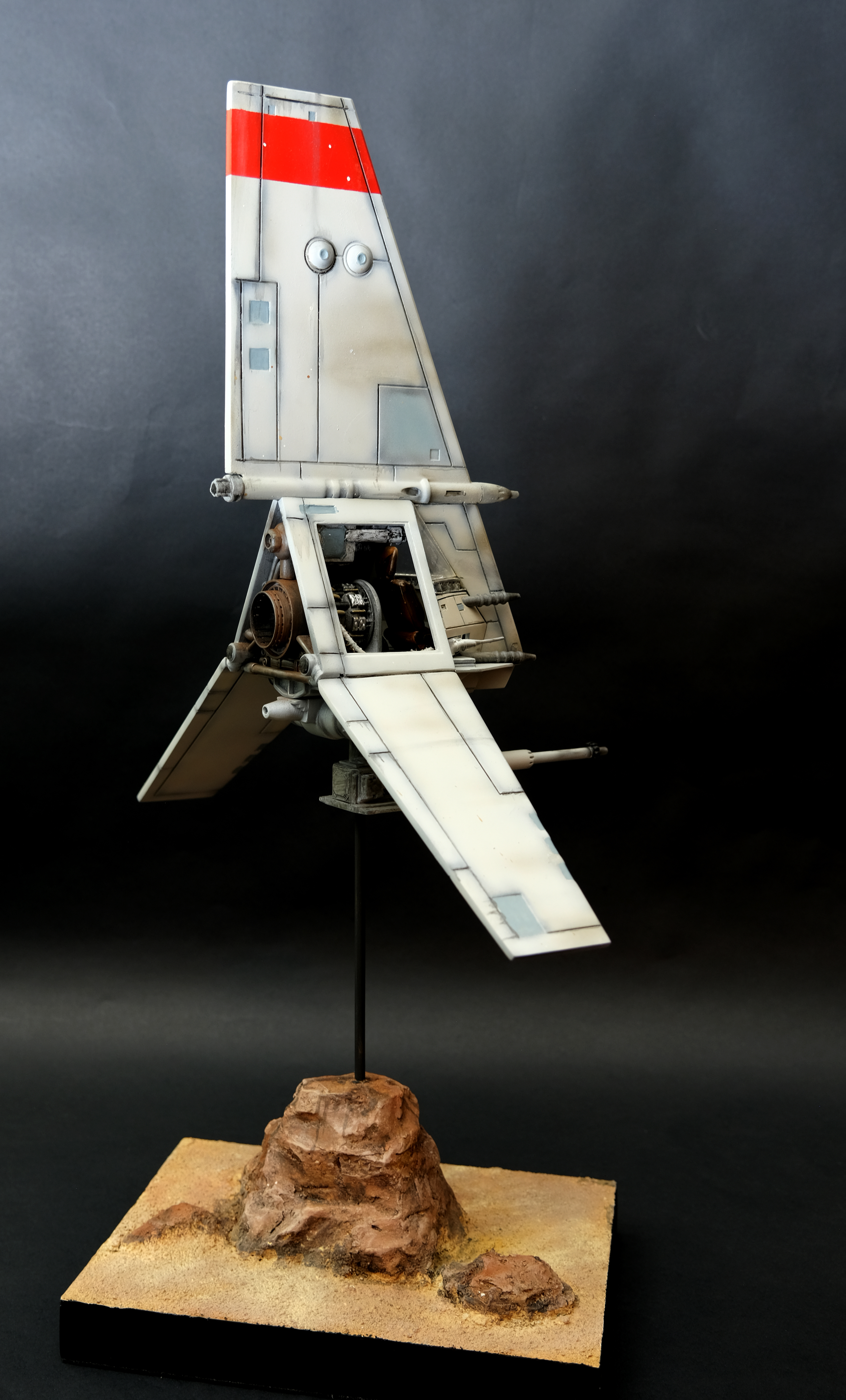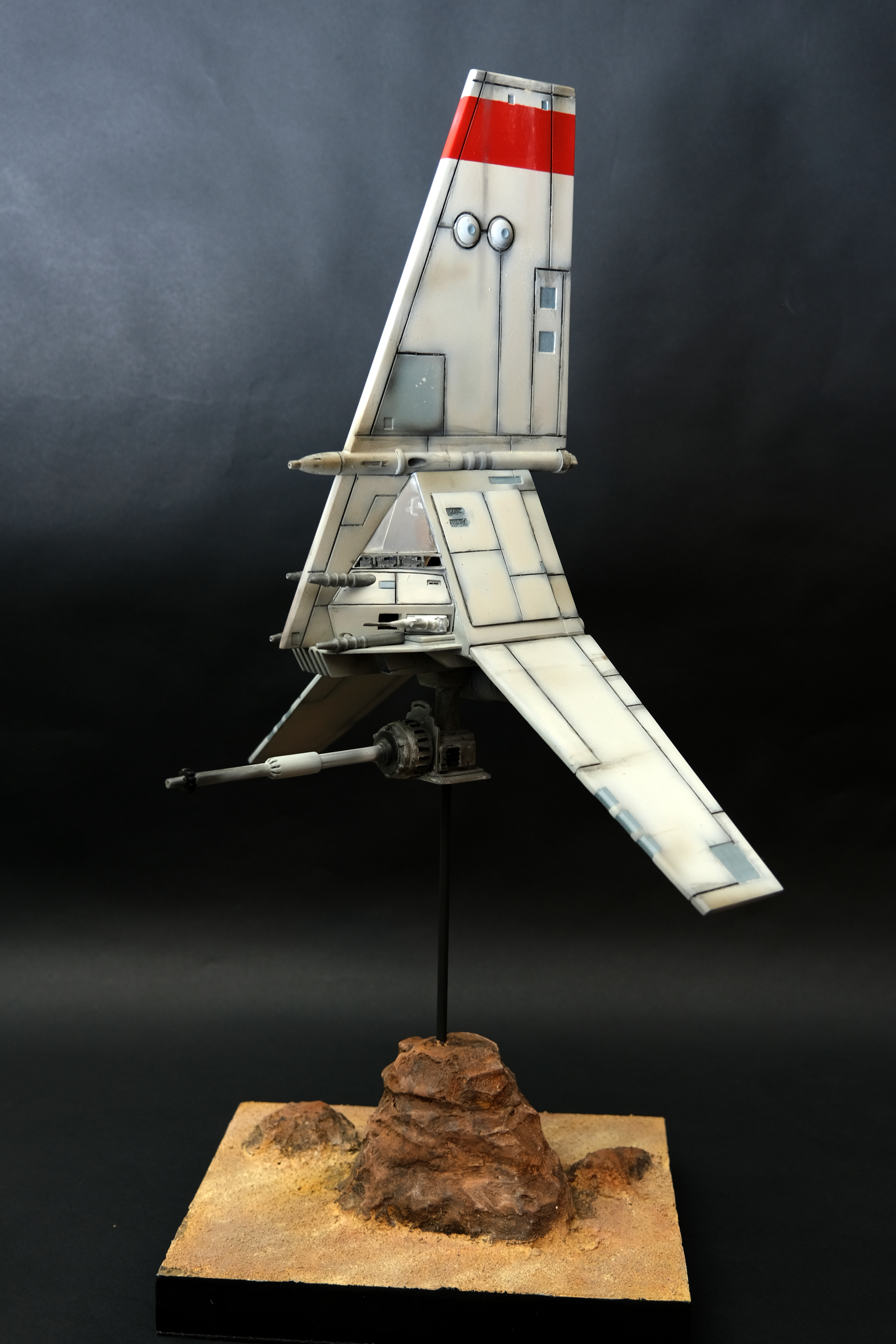 Studio scaled 3d printed T-16 Skyhopper. Airbrushed and weathering finish. Mixed media base using expanded polystyrene.