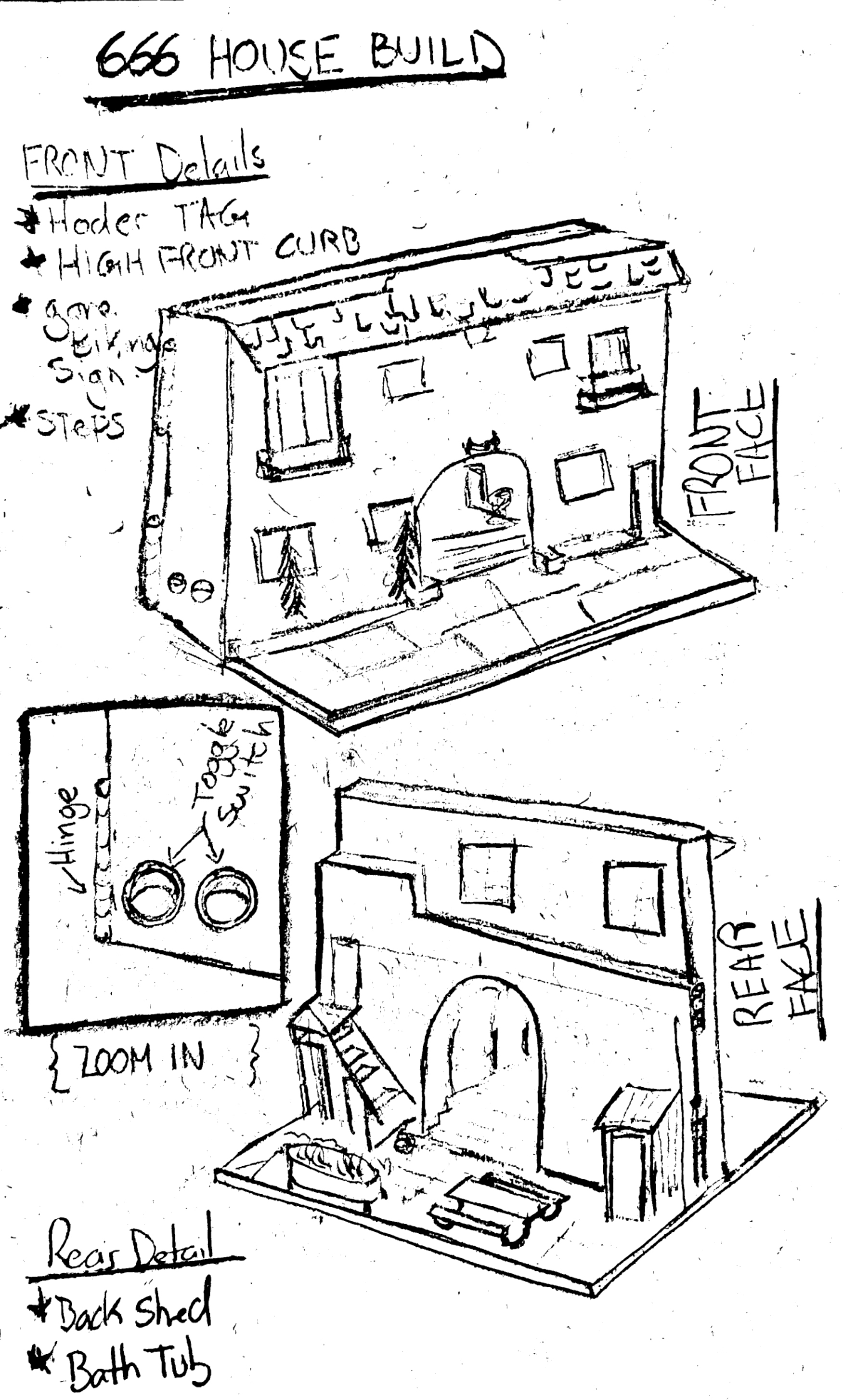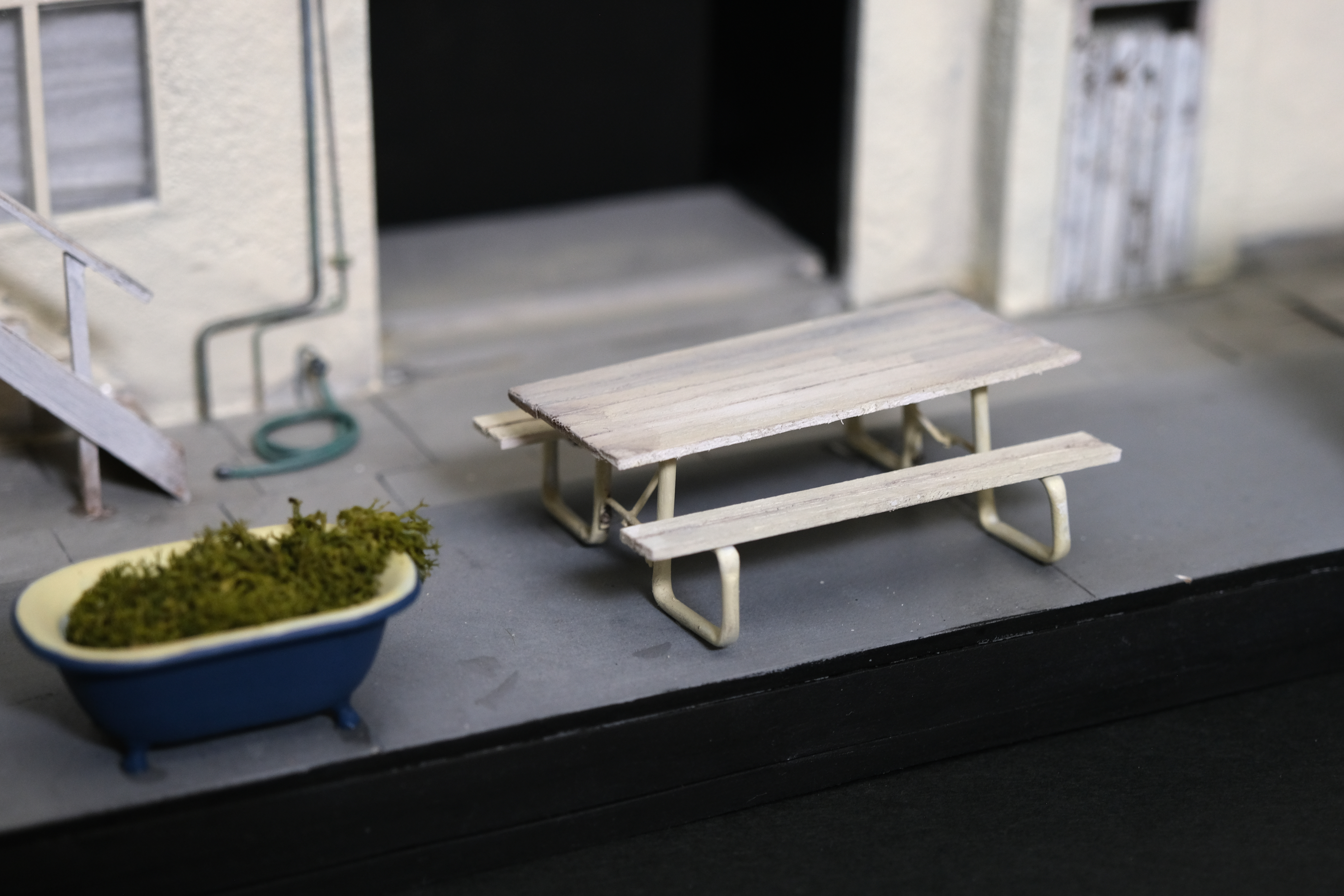 The six house was a building in Long Beach California, that rented out purely to the professional BMX community. From Professional Riders, Cinematographers, and photographers. Model was built with medium density fiberboard , styrene, and other mixed media materials.